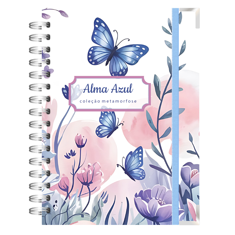 *Ao escolher seu nome na capa, este será impresso onde se lê "Alma Azul". Caso o cliente opte por não inserir nome, a capa será confeccionada com a escrita Alma Azul- Coleção Metamorfose.